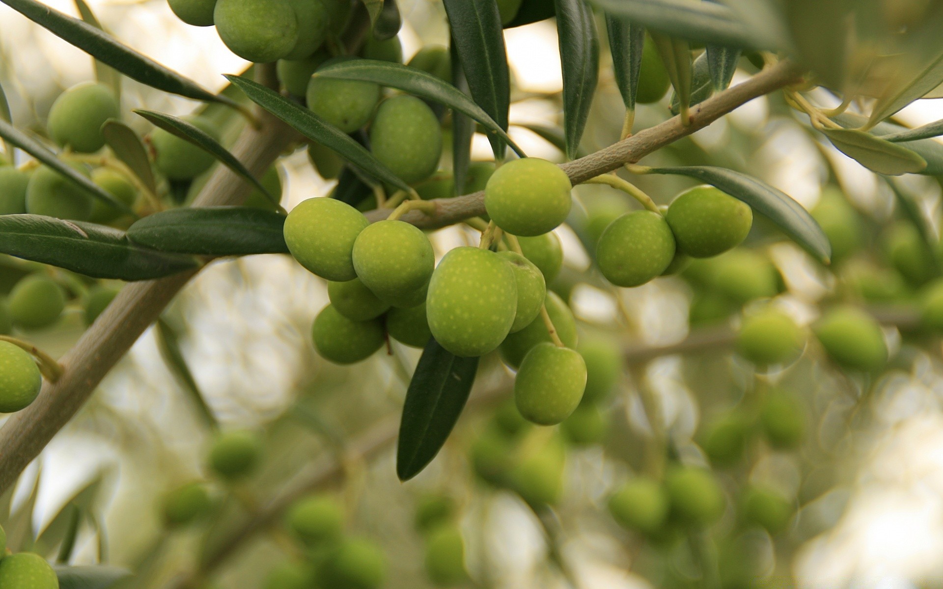 Sur le fond du ciel, une branche avec des baies et des fleurs