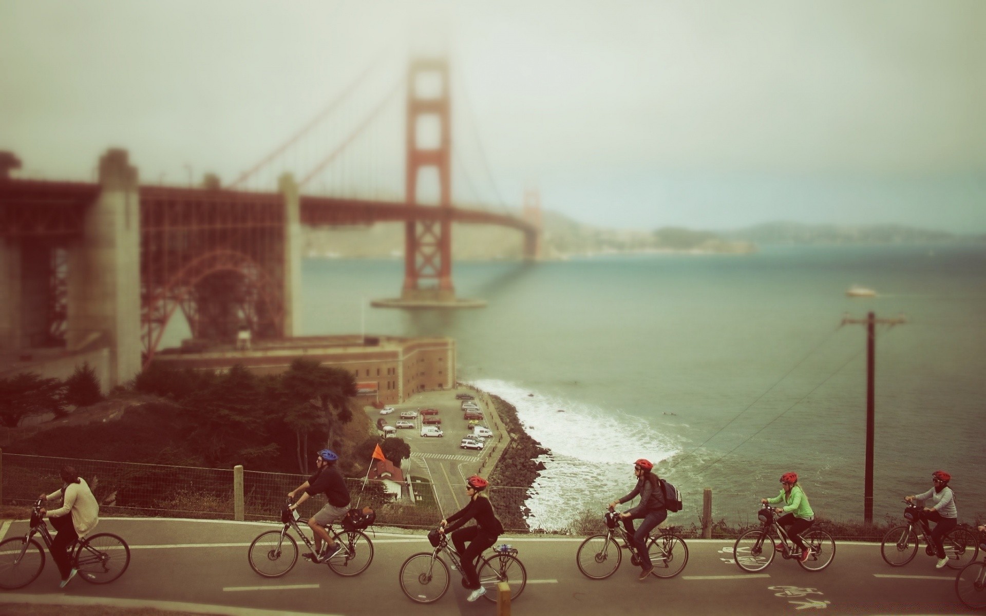 Cyclistes sur la route du pont