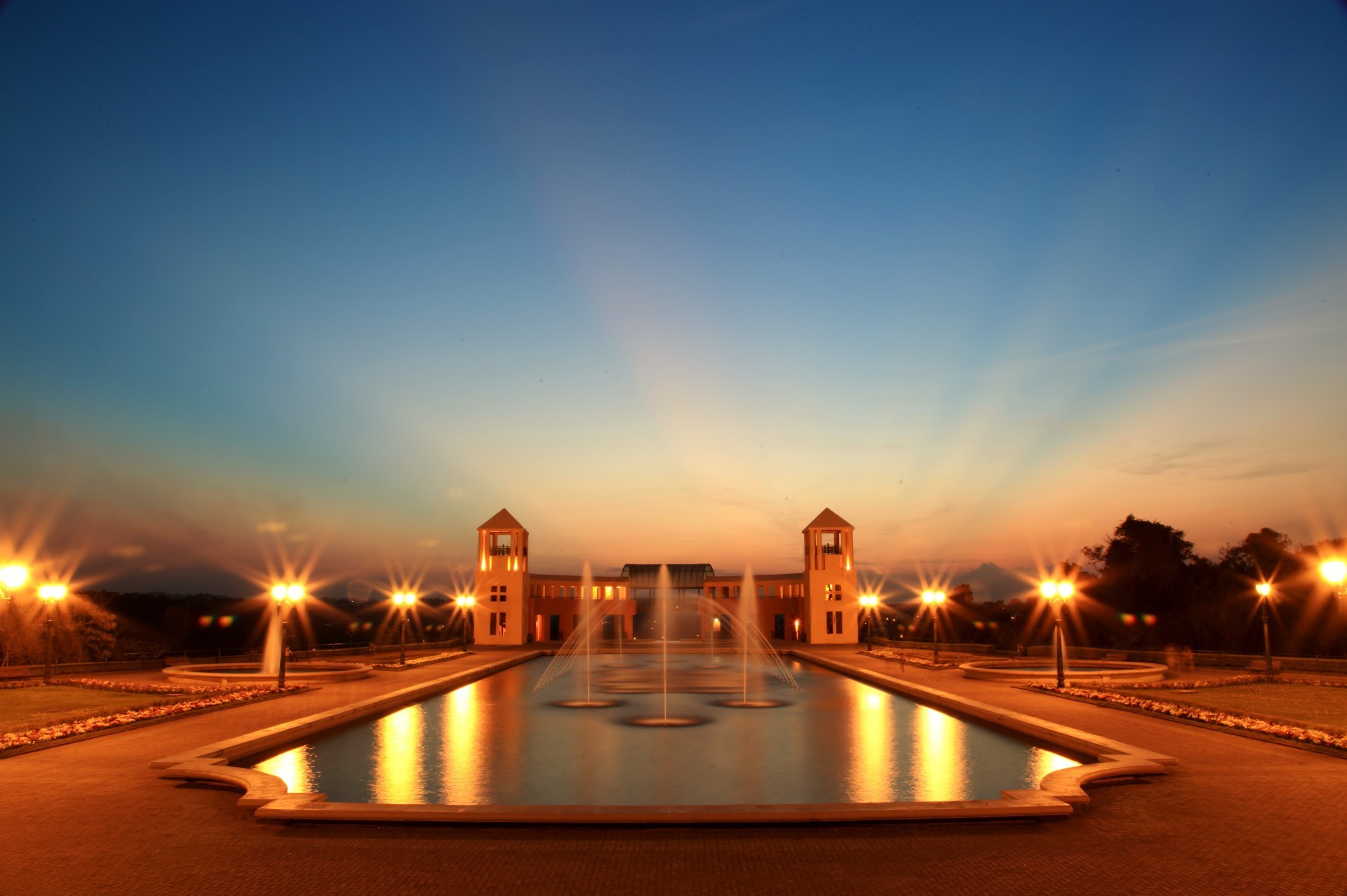Beau coucher de soleil à travers les nuages se reflétant dans le lac
