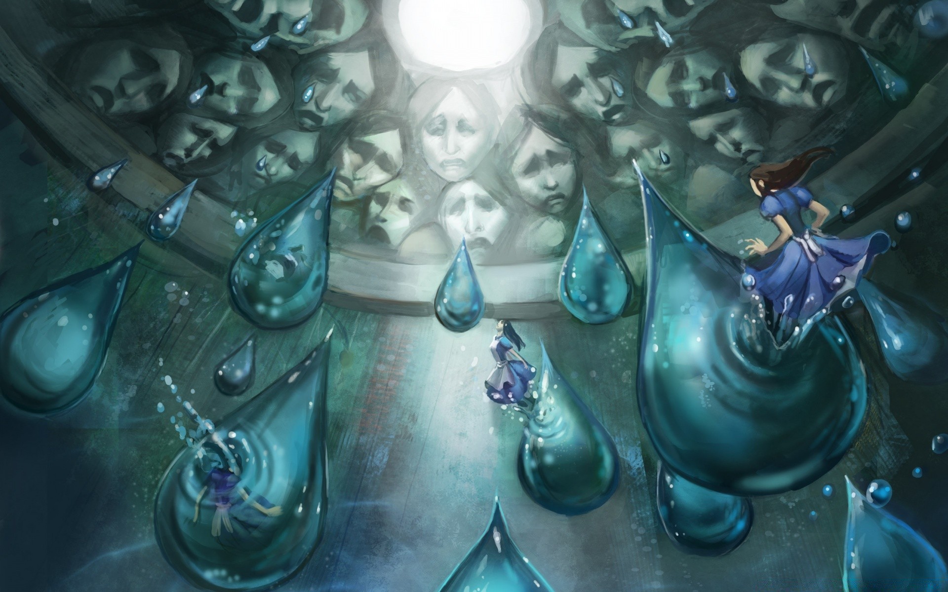 Beaucoup de gens qui pleurent avec des gouttes de larmes