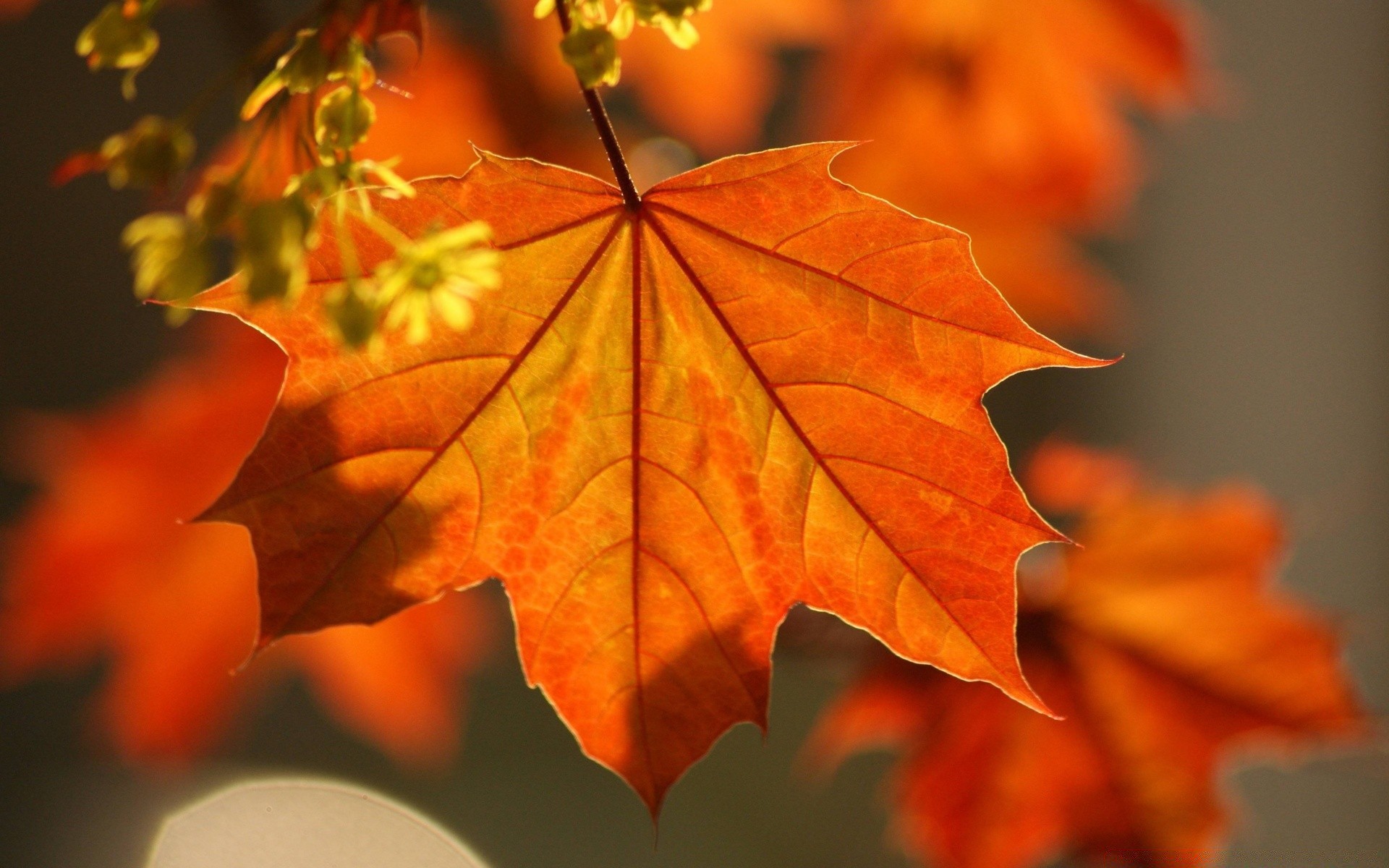 Grandes feuilles d'érable orange et petites fleurs