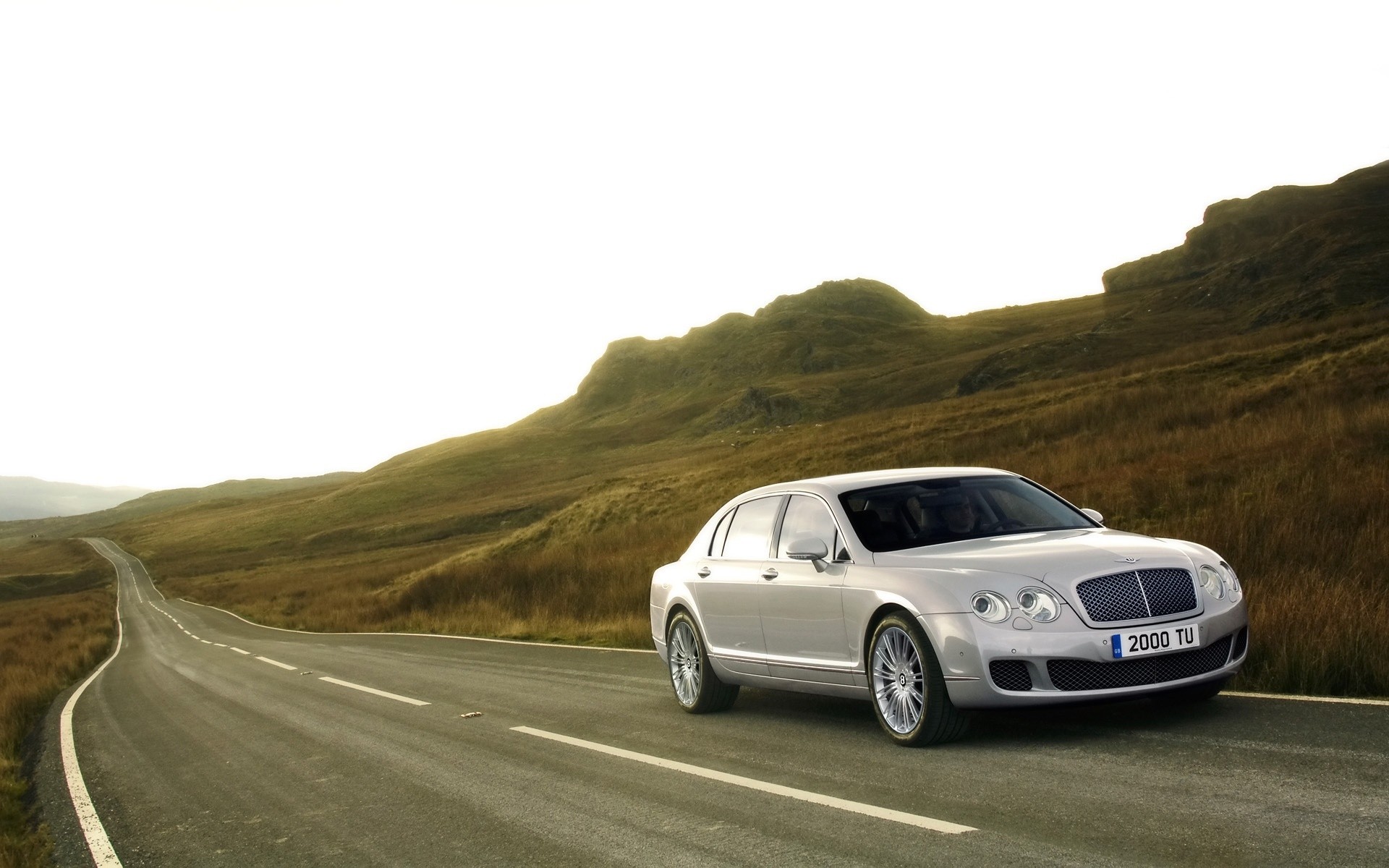 Une voiture bentley sur la route roule sur un véhicule anti-collisionUne voiture Bentley sur la route roule sur un véhicule anti-collision