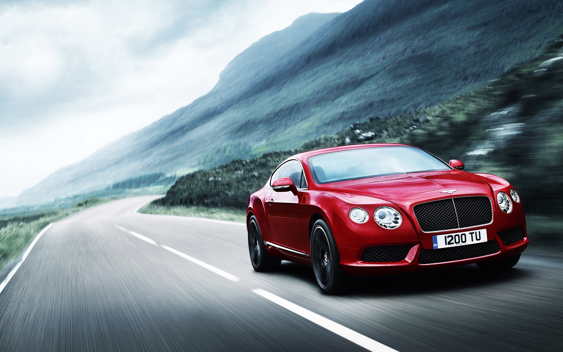 Une voiture bentley sur la route roule sur un véhicule anti-collisionUne voiture Bentley sur la route roule sur un véhicule anti-collision