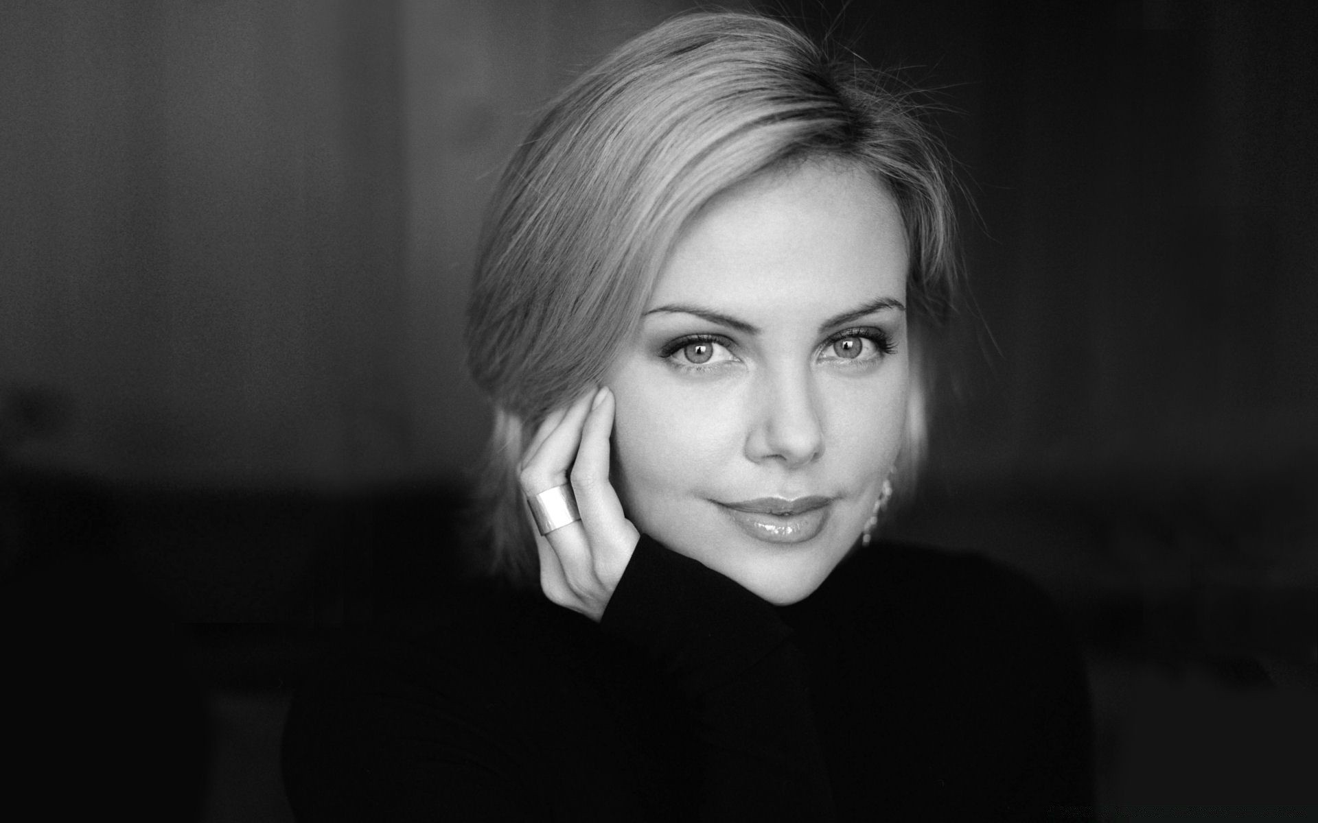 Portrait noir et blanc d'une actrice aux cheveux courts