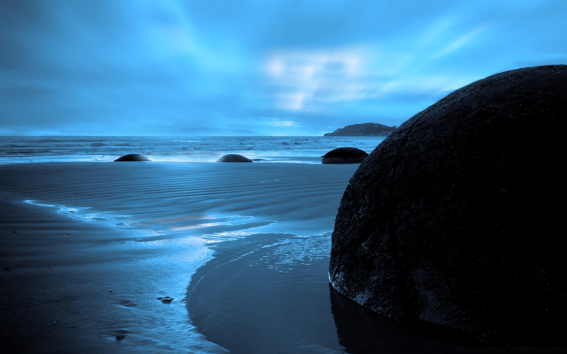 Coucher de soleil bleu sur le lac. Crépuscule au bord de l'eau