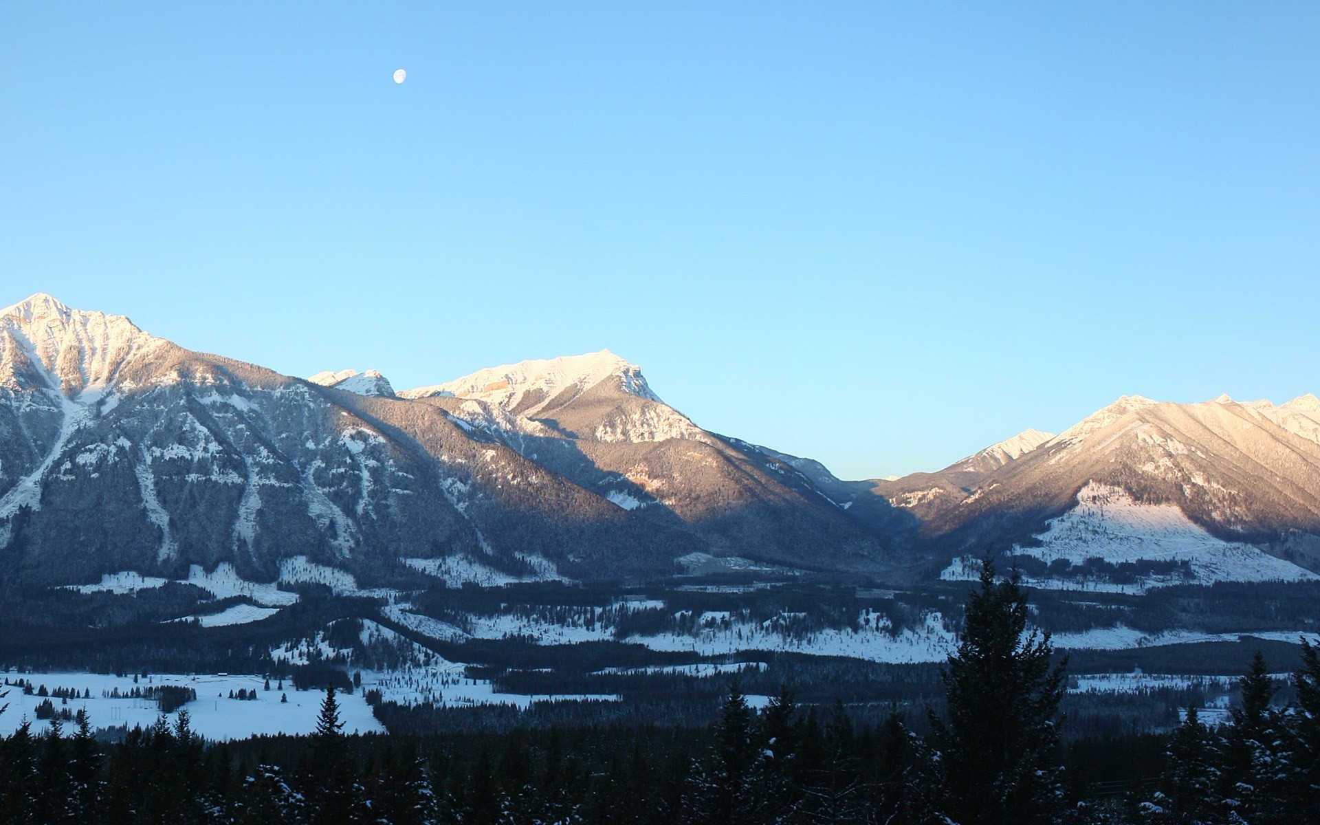 Paysage de neige de montagne au crépuscule
