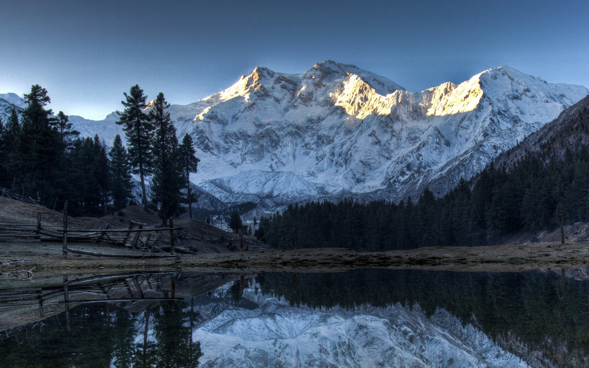 Montagnes et sapins couverts de neige