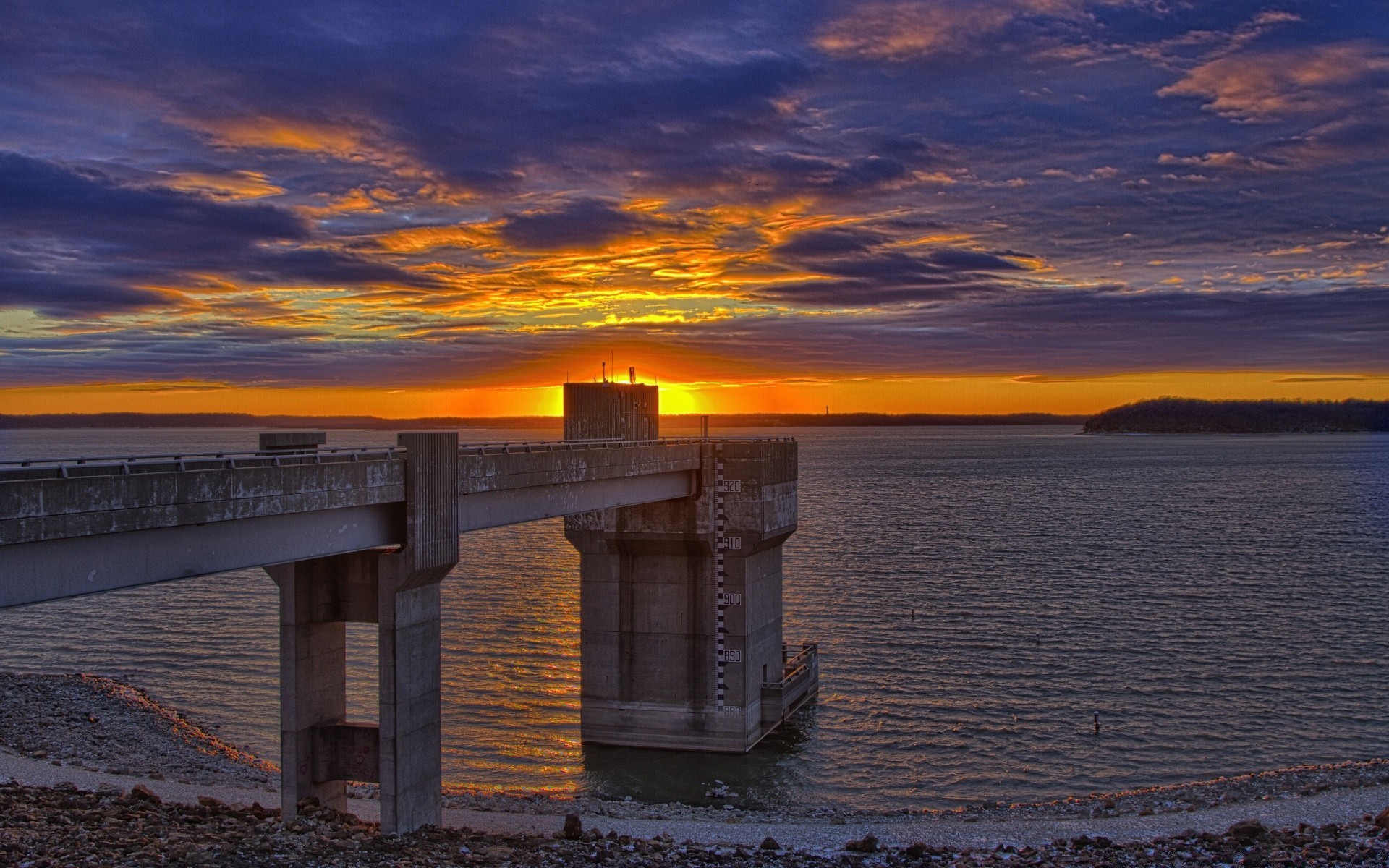 Coucher de soleil avec des nuages dans le ciel au bord de l'eau