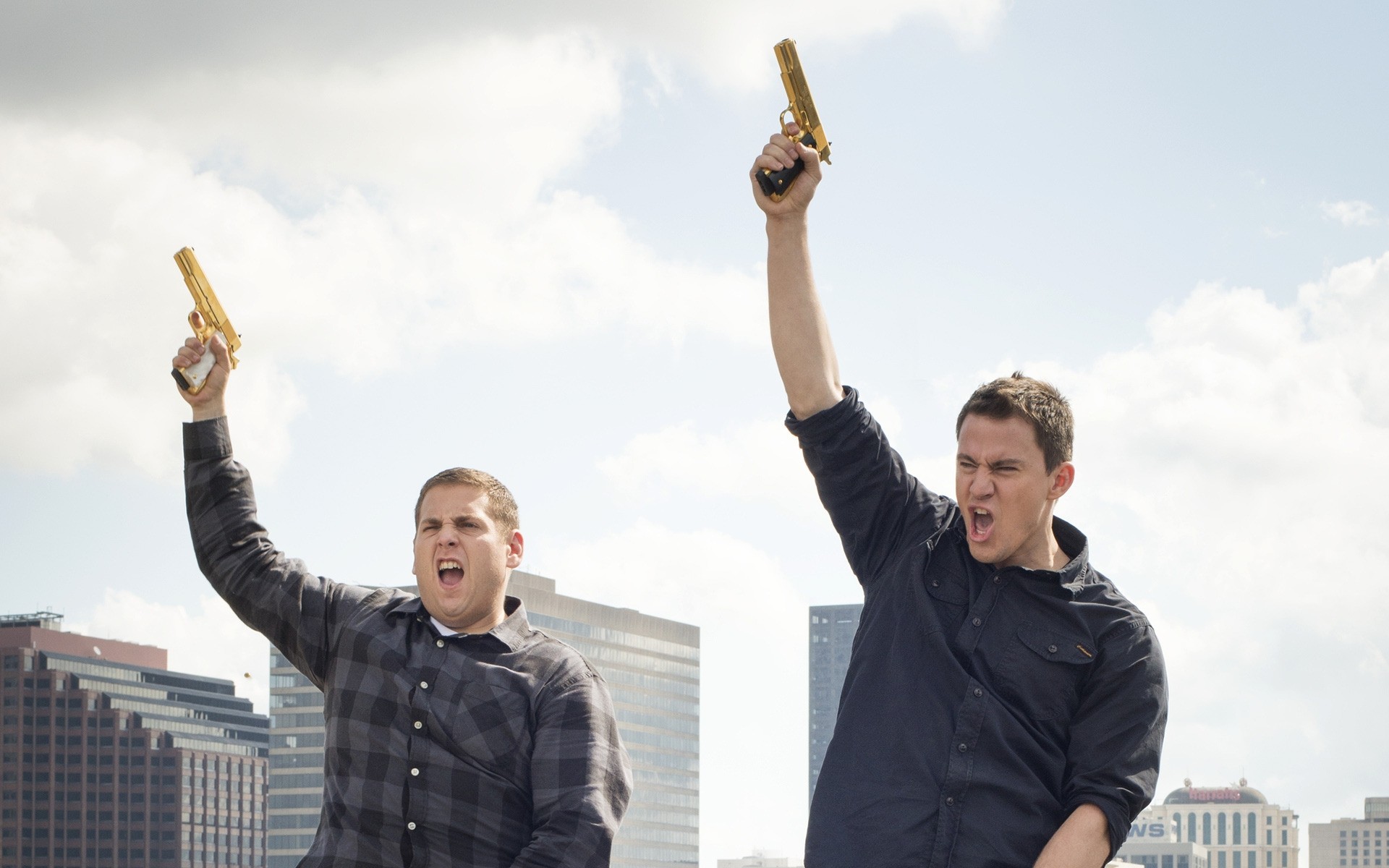 Deux amis à l'extérieur arborant des pistolets