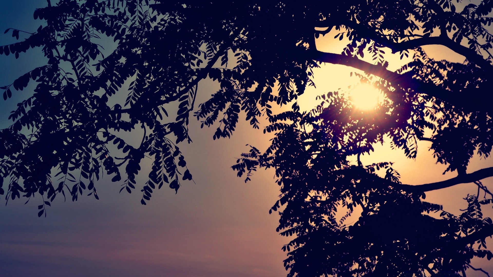 Automne ciel soleil coucher de soleil rayons montagnes branches feuillage mer