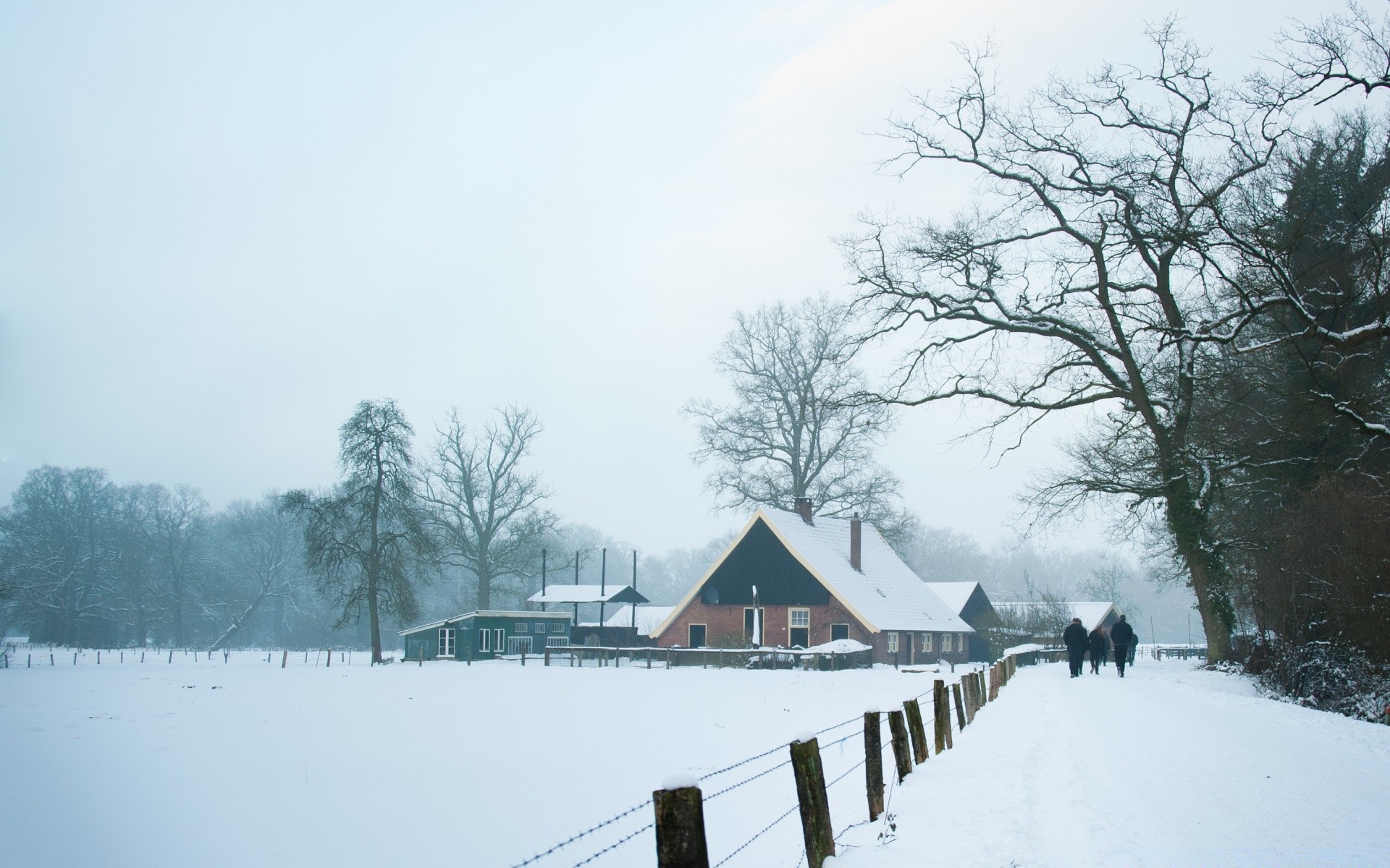 Paysage enneigé d'hiver avec maison et arbres