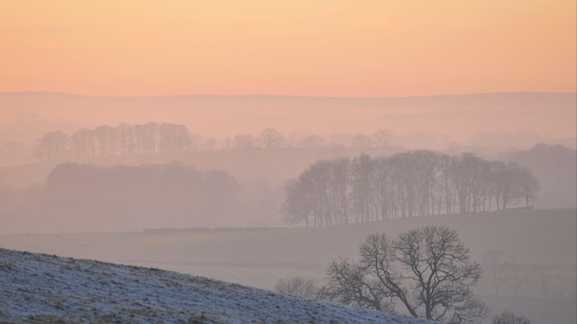 Brouillard sur les arbres au coucher du soleil. automneBrouillard sur les arbres au coucher du soleil. Automne
