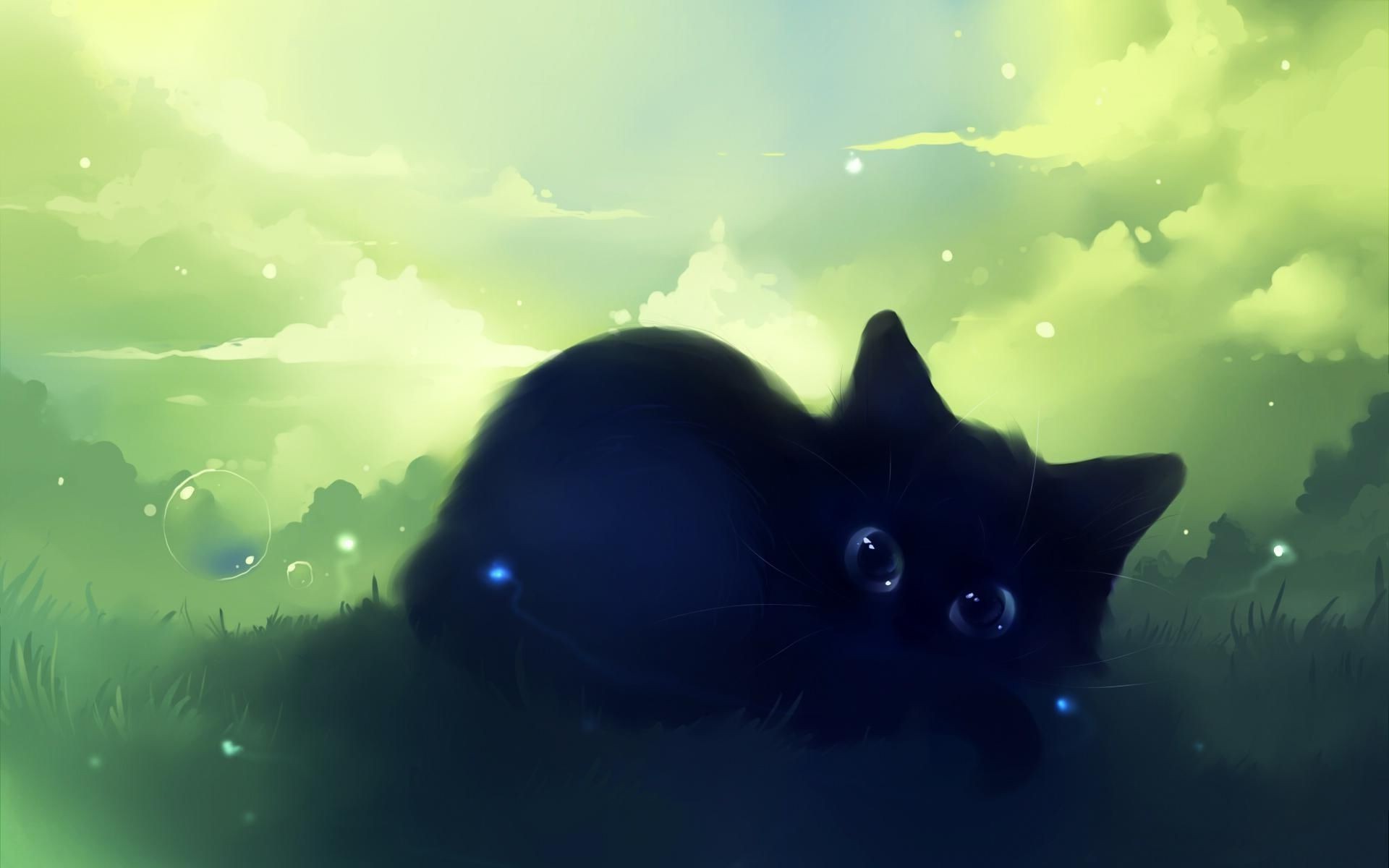 Chat noir et bleu aquarelle