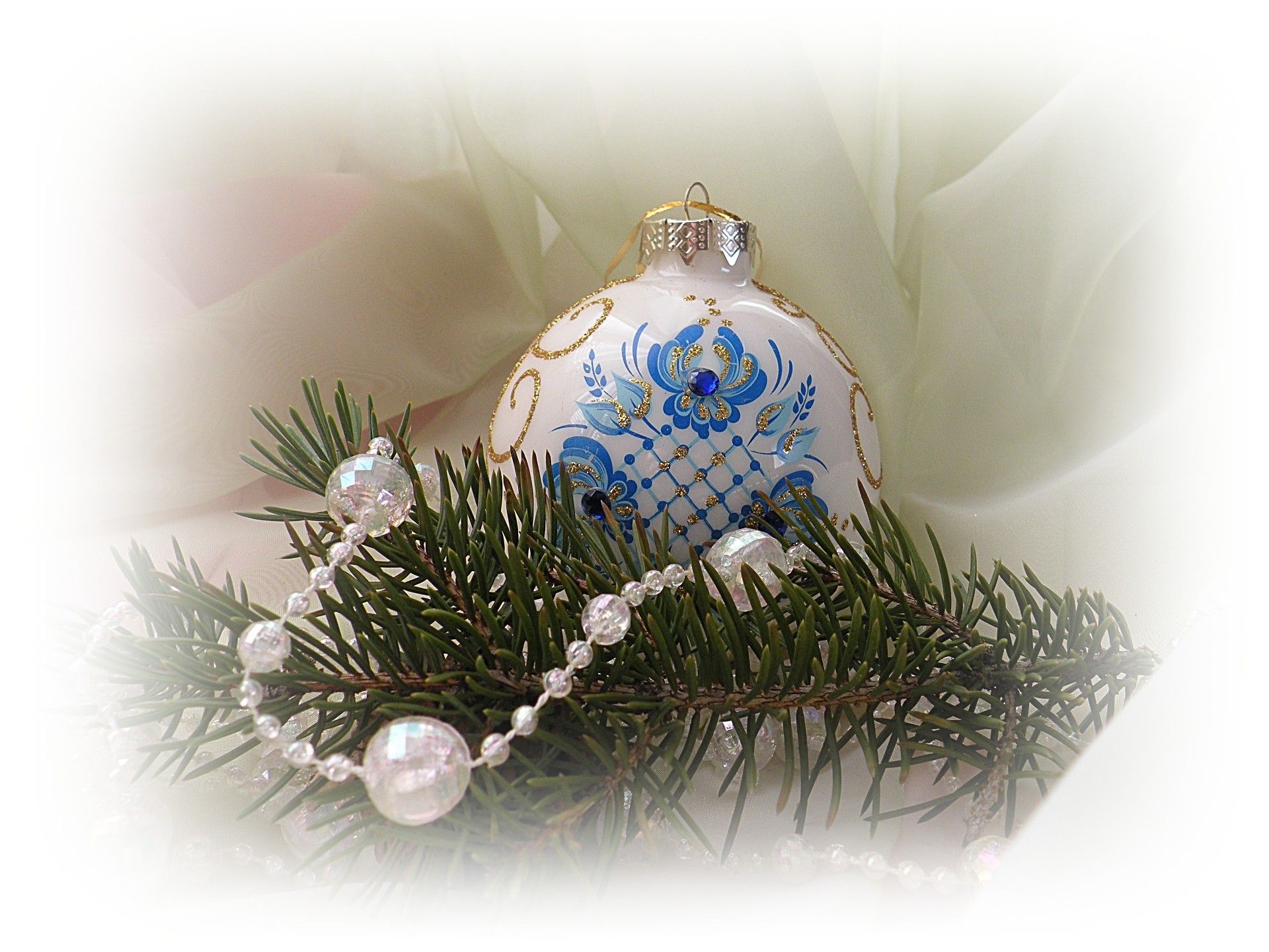 Branche d'arbre de Noël et jouet avec peinture sous Khokhloma