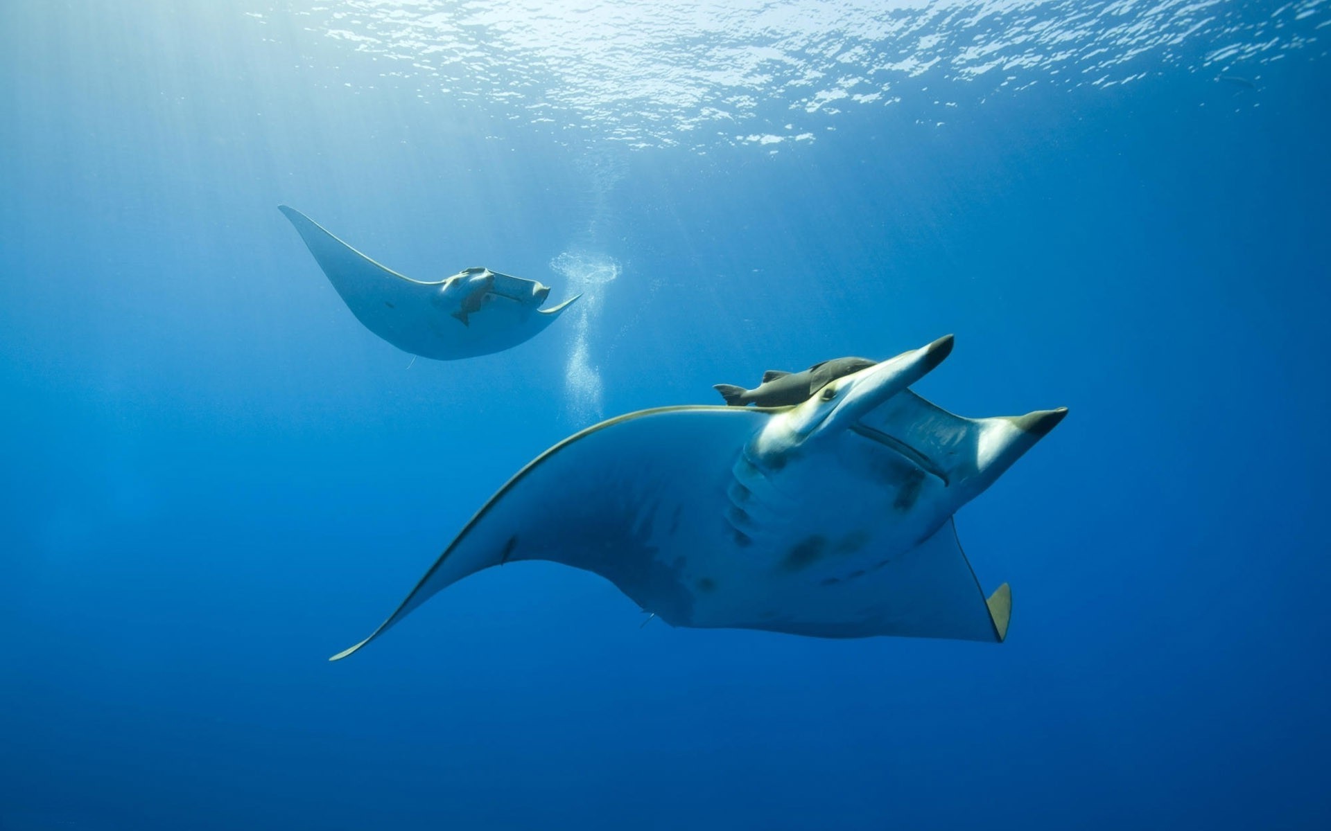 Stingray flottant dans la mer bleue
