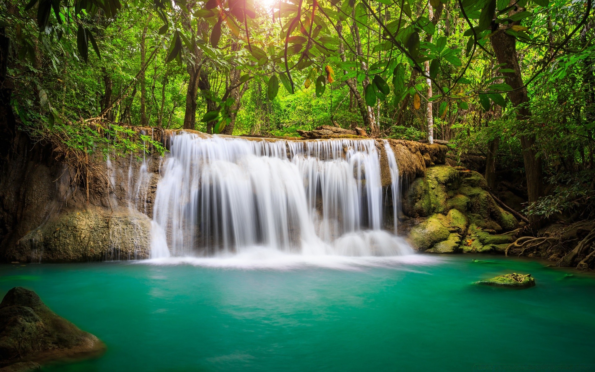 Cascade de forêt avec des pierres couvertes de mousseCascade de forêt avec des pierres couvertes de mousse