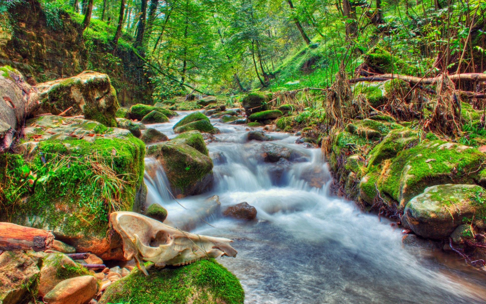 Un ruisseau de cascades descendent dans la rivière