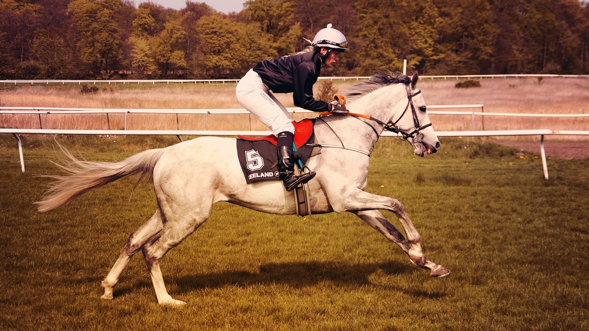 Un cheval blanc avec une queue noire et une crinière saute joyeusement sur le terrainUn cheval blanc avec une queue noire et une crinière saute joyeusement sur le terrain