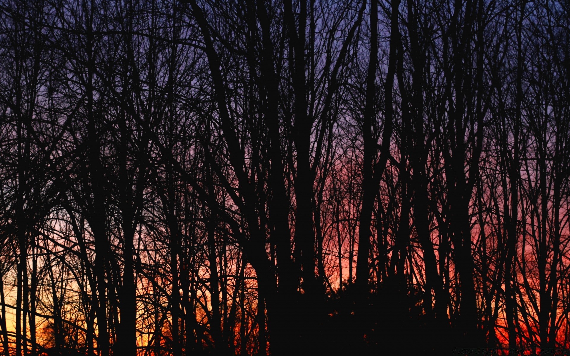Coucher de soleil rouge sang sur la cime des arbres