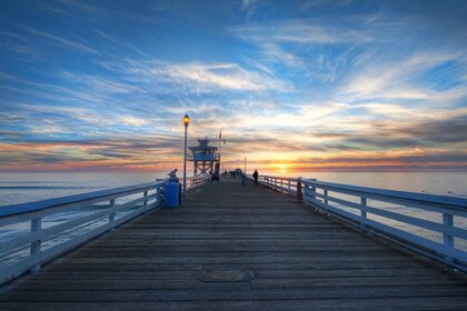 Pont dans les lumières roses au-dessus de la grande rivièrePont dans les lumières roses au-dessus de la grande rivière