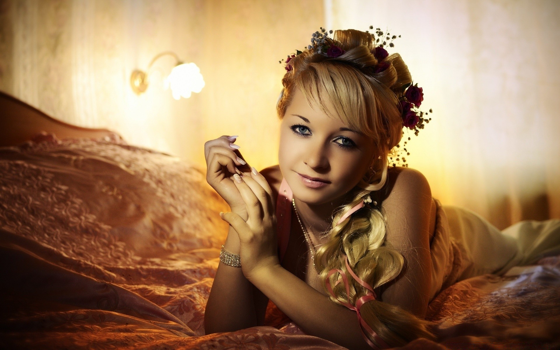 Fille sur le lit avec tresse tressée et Couronne sur la tête