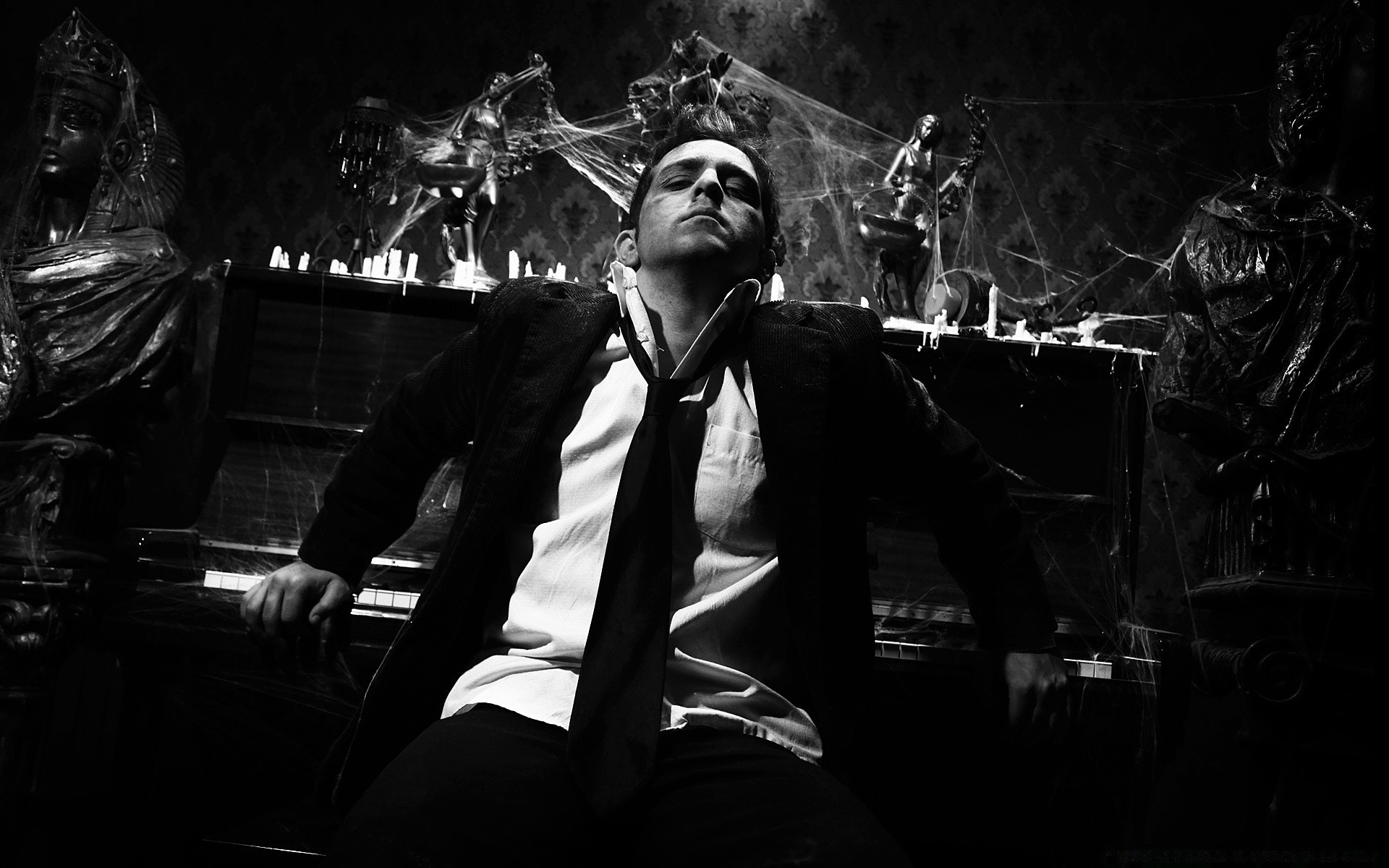 Photo noir et blanc d'un jeune homme