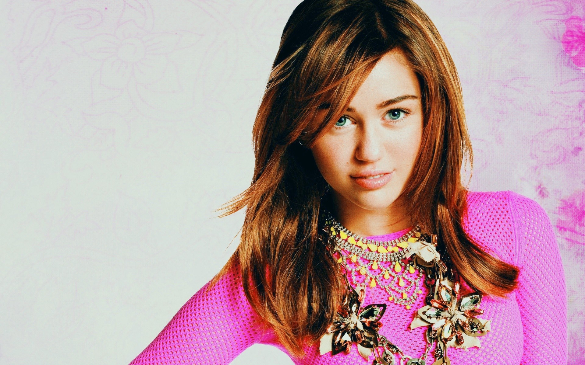 Photo de la belle chanteuse en t-shirt rose