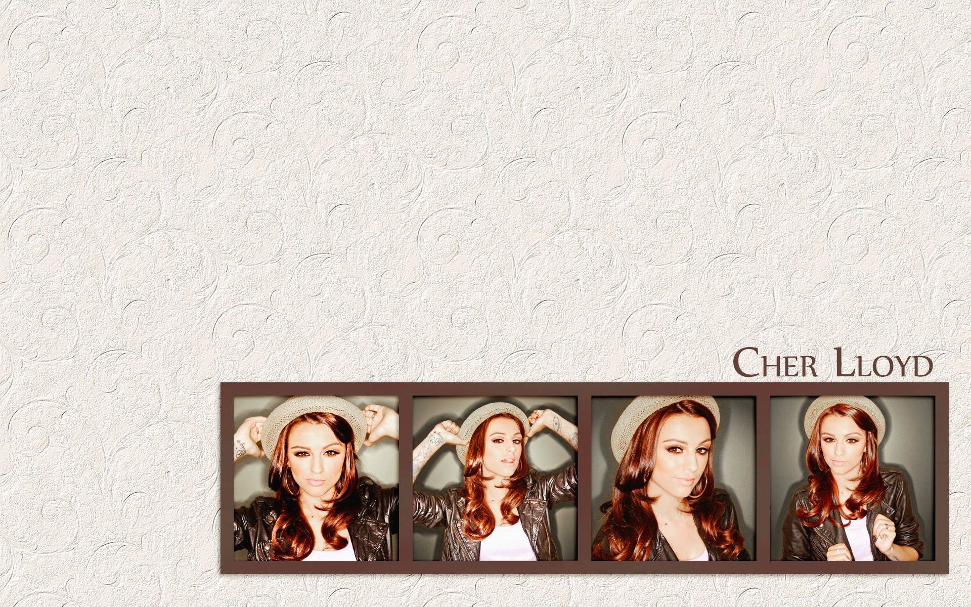 Femme en robe brune sur fond gris