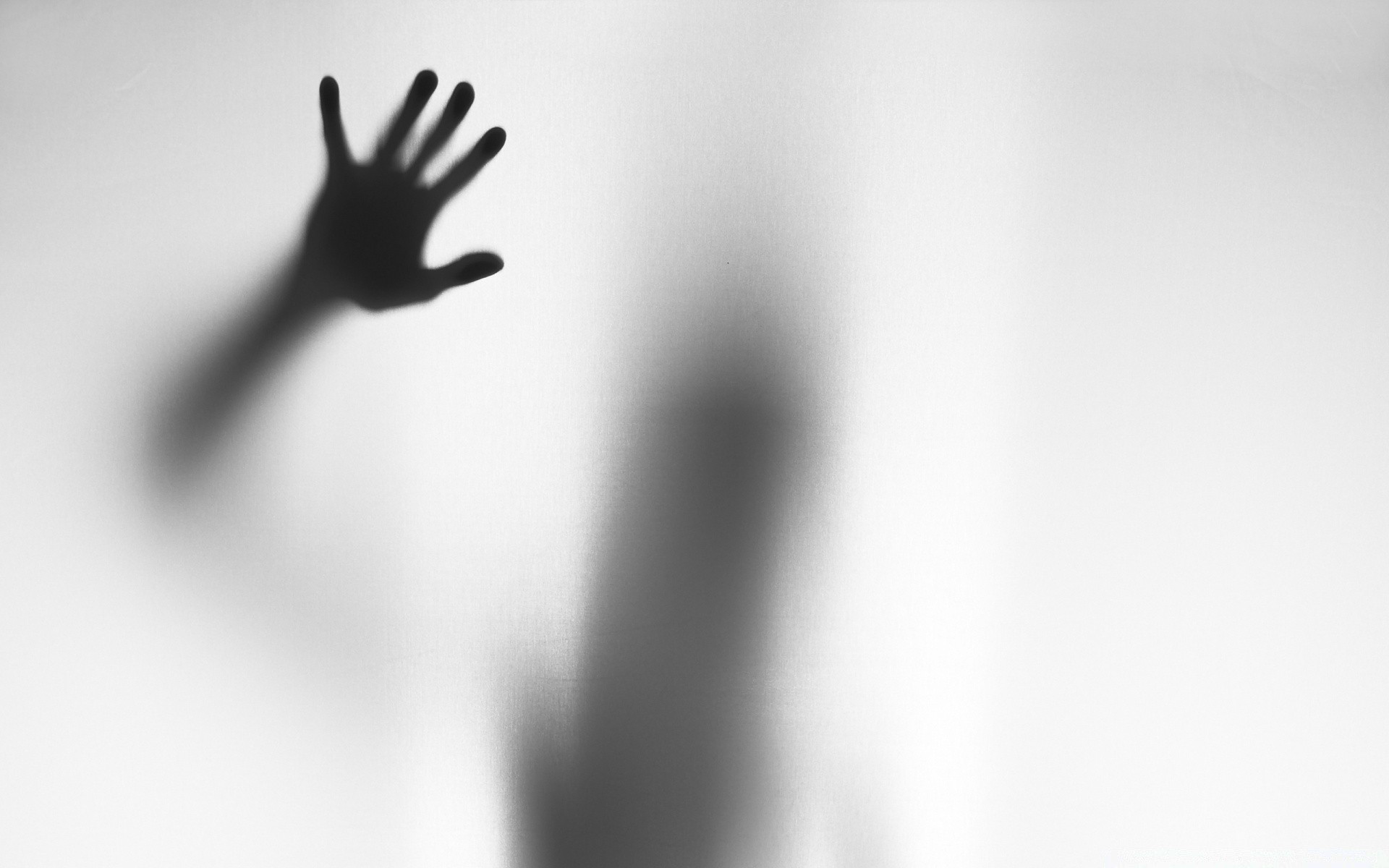 Main sur fond blanc flou