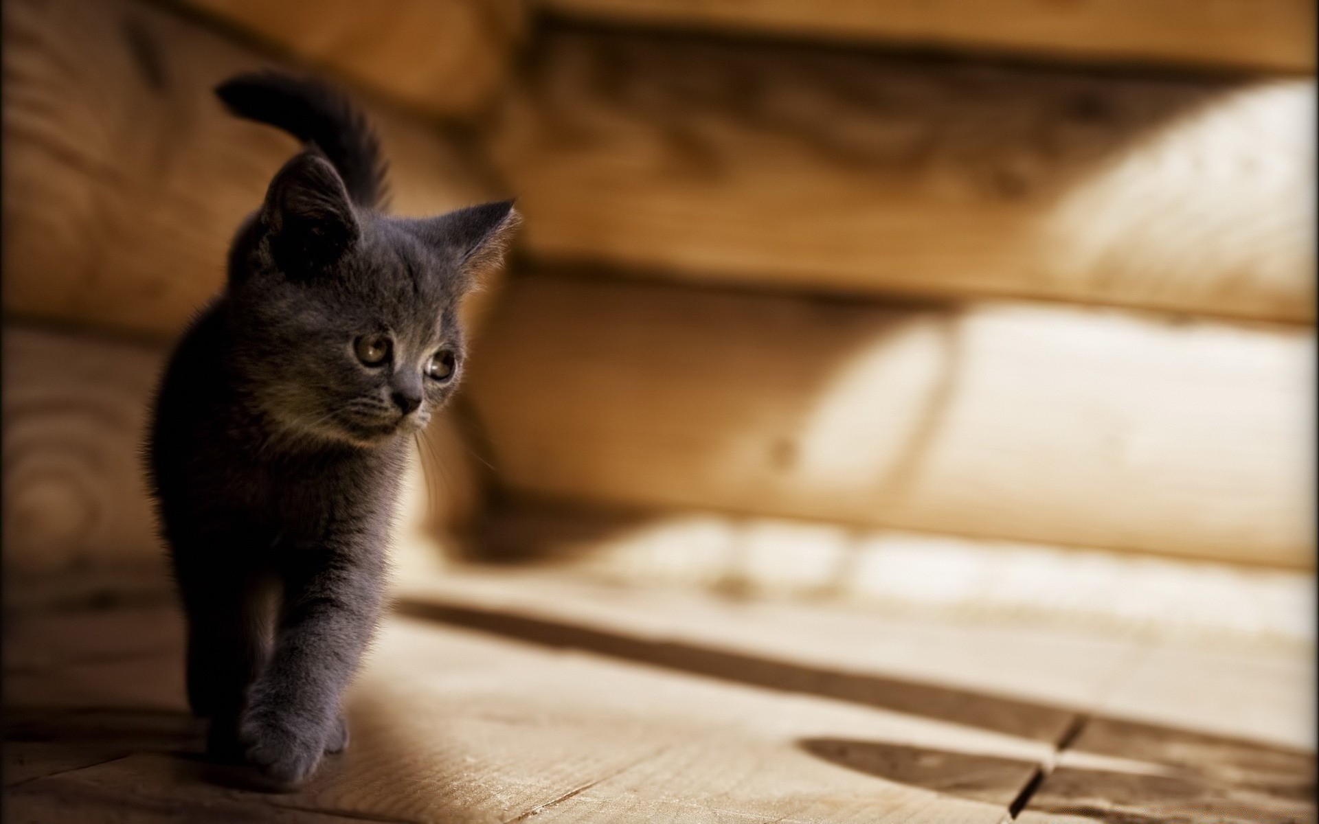 Chat marche sur le bois
