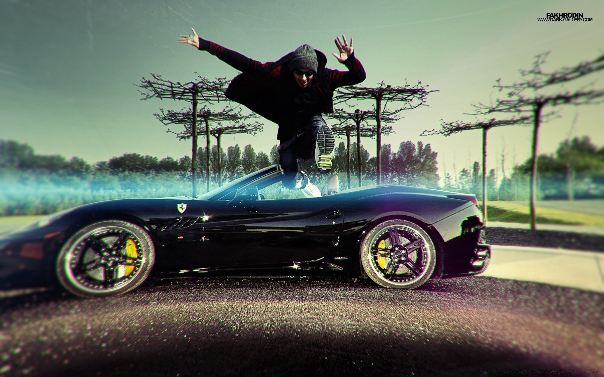 Voiture de course noire à proximité avec des phares allumésVoiture de course noire à proximité avec des phares allumés