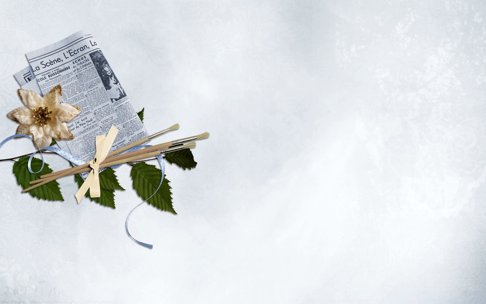 Vintage. Un journal frais. Pinceaux. Fleur sèche