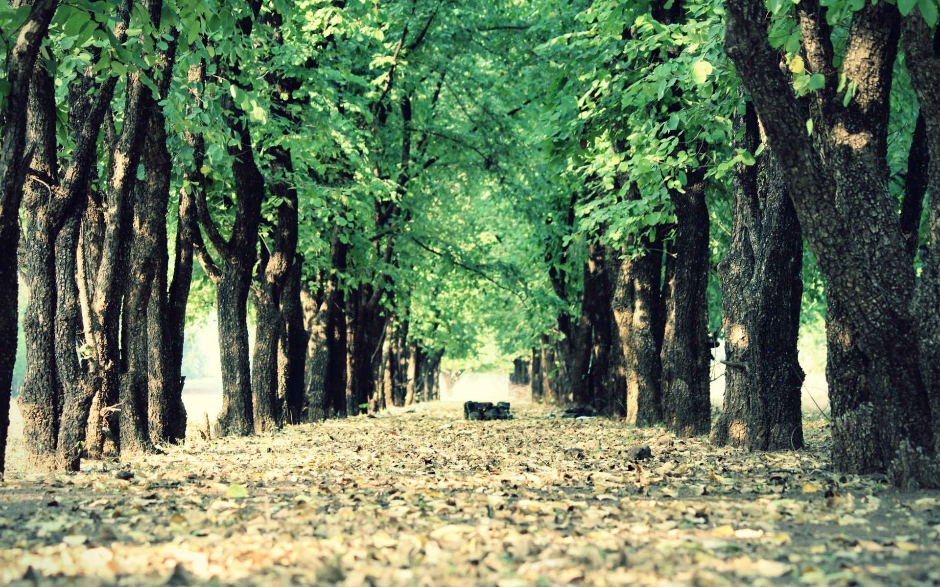 Allée verte des arbres, allée ensoleillée