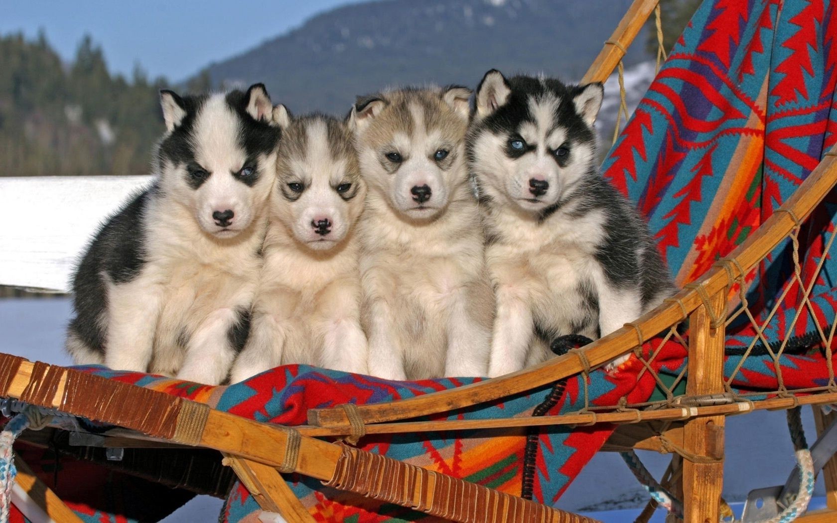 Chiot sur le canapé rouge avec un écheveau enchevêtré de fil orange