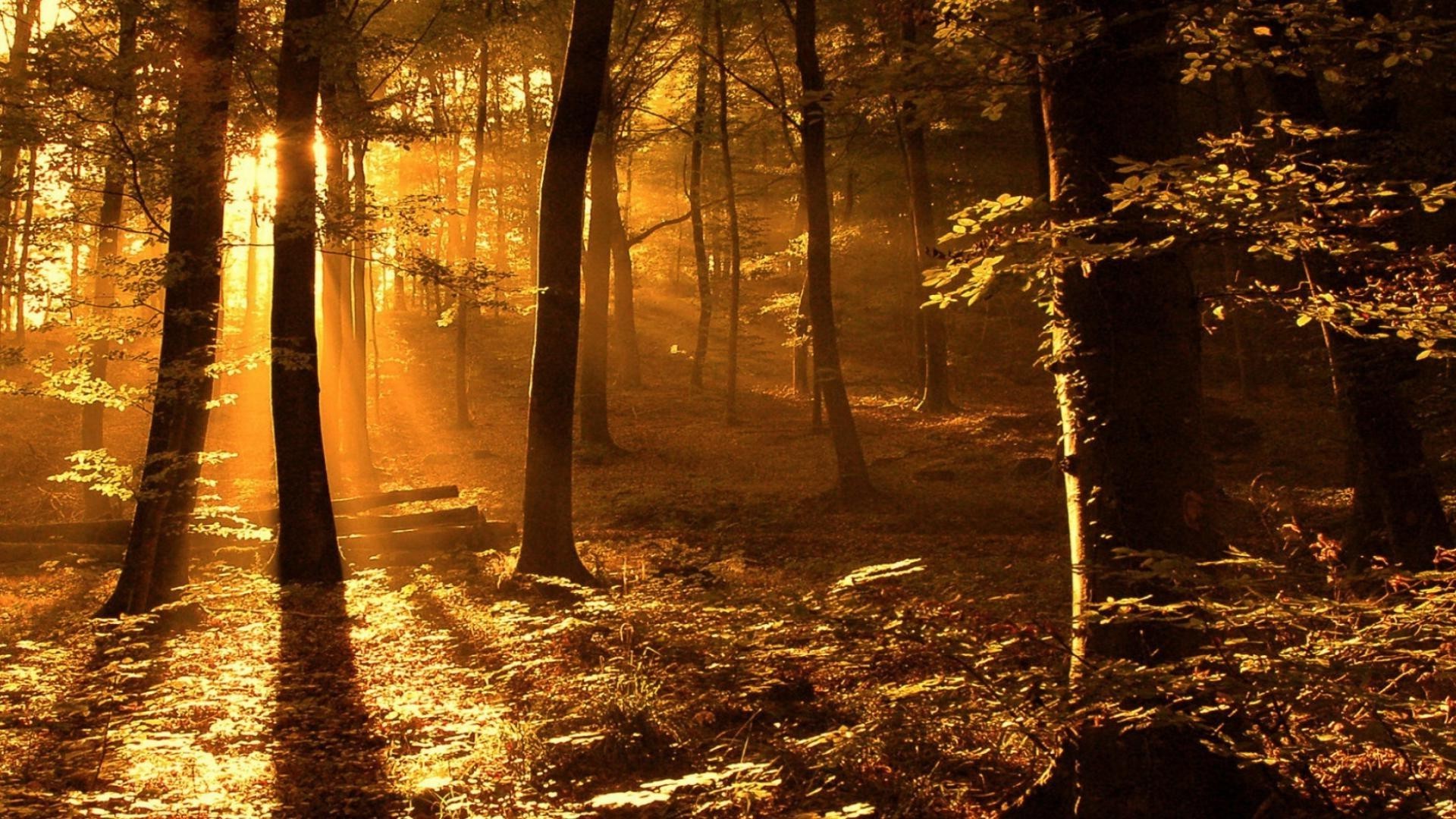 Orangers et feuilles mortes en automne au coucher du soleil