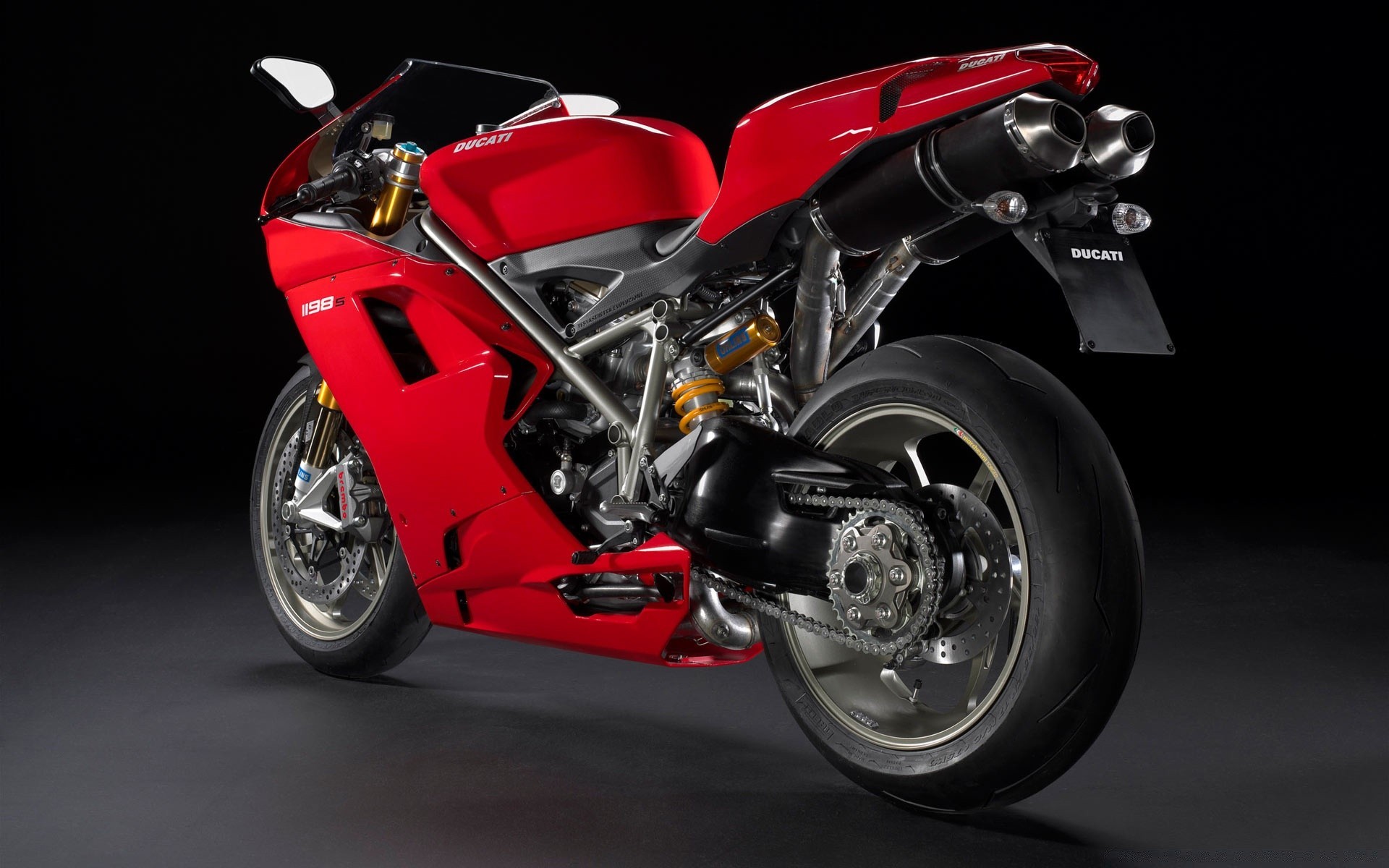 Moto rouge dans une pièce grise