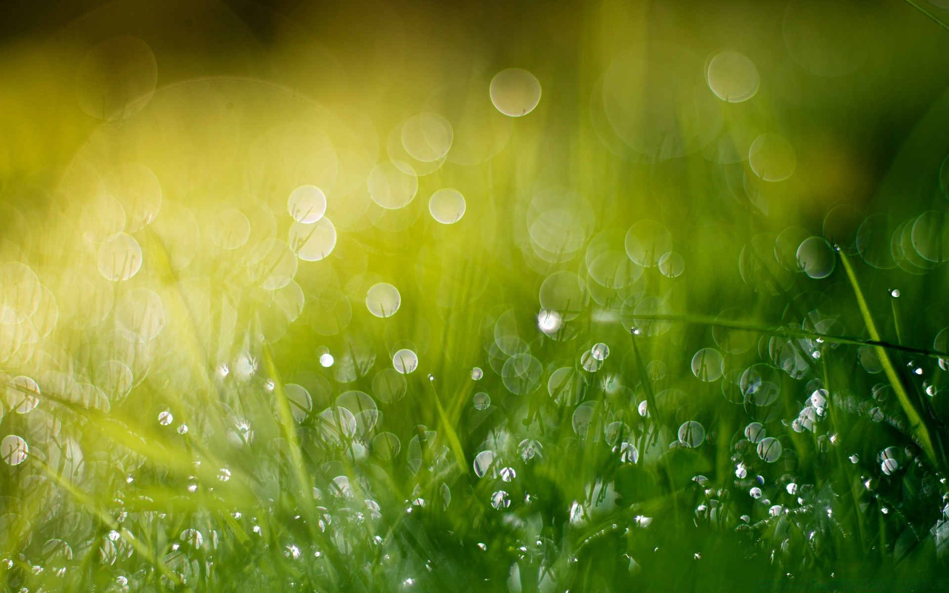 Rosée sur l'herbe verte brillante