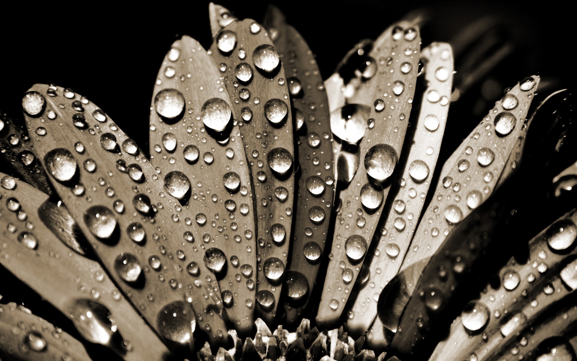 Après la pluie, les fleurs sont recouvertes d'humidité