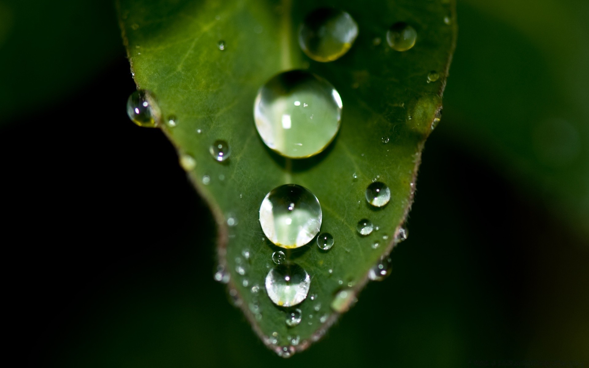 Une goutte coule sur une feuille verte
