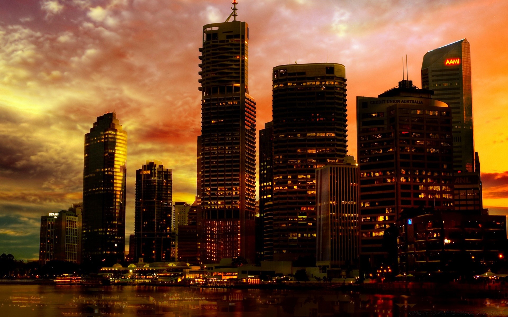 Coucher de soleil ciel sur l'eau dans la ville