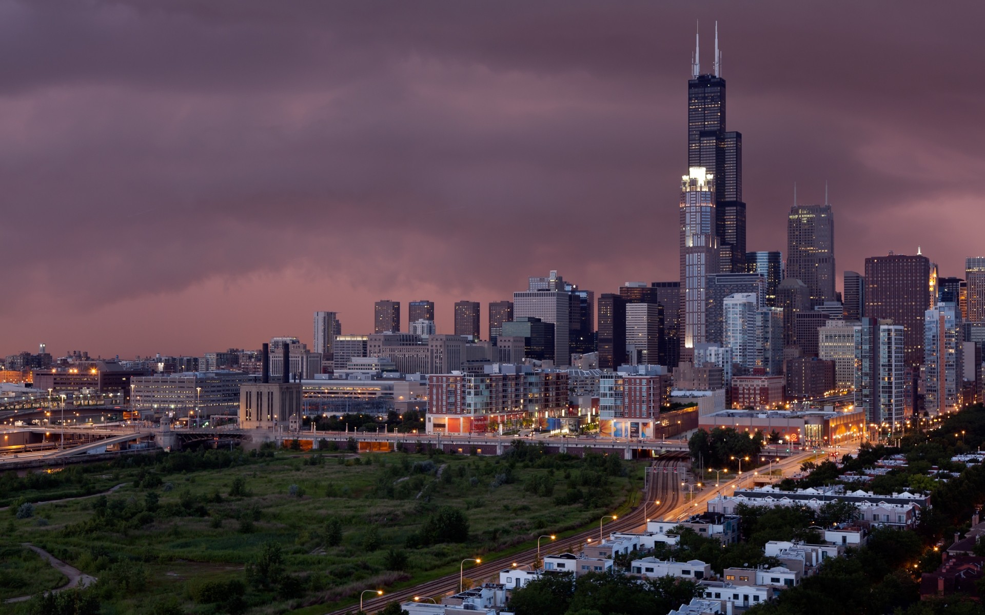 Gratte-ciel dans le centre-ville au coucher du soleil