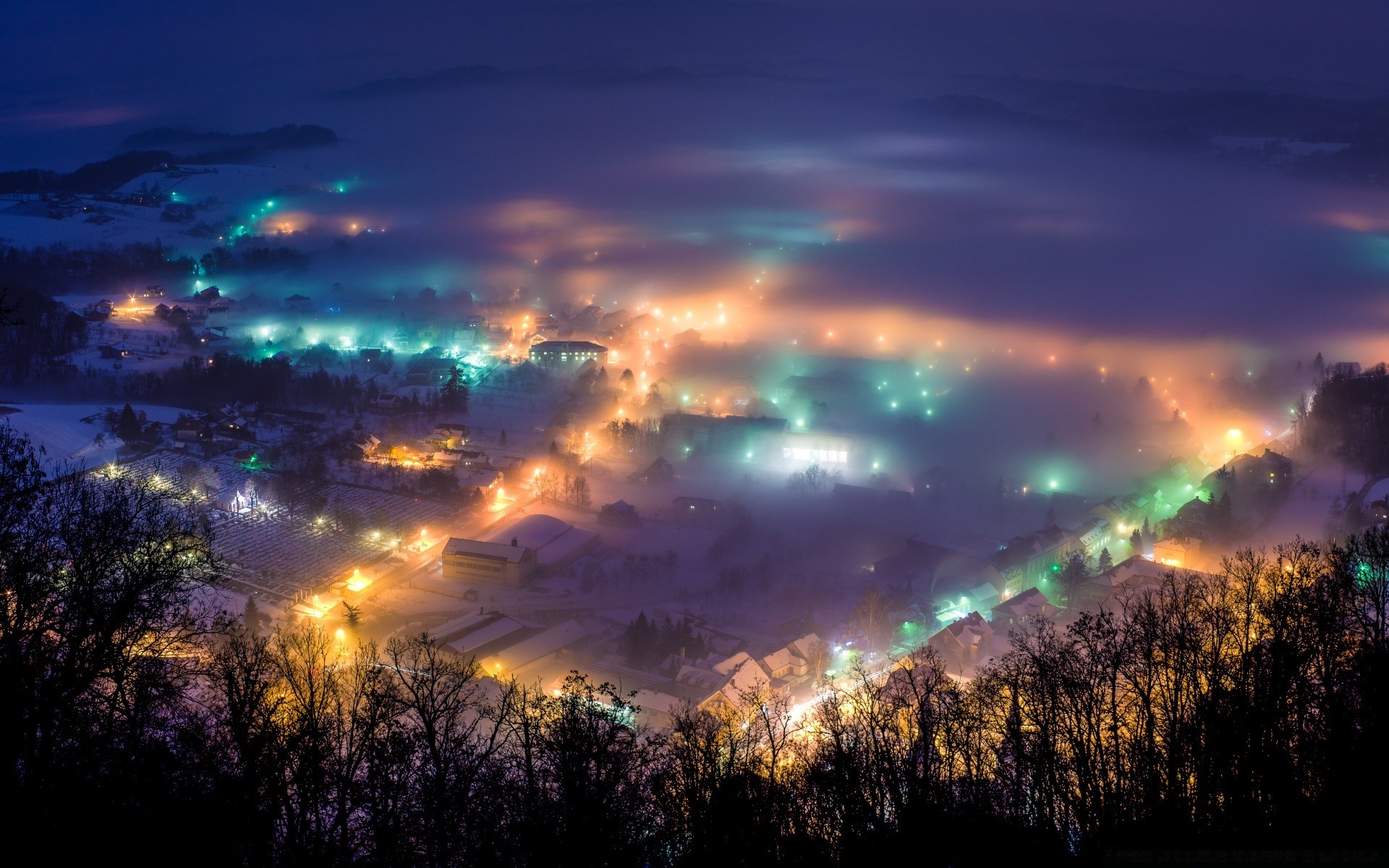 Maison de style fantastique avec des fenêtres éclairées debout près de l'eau