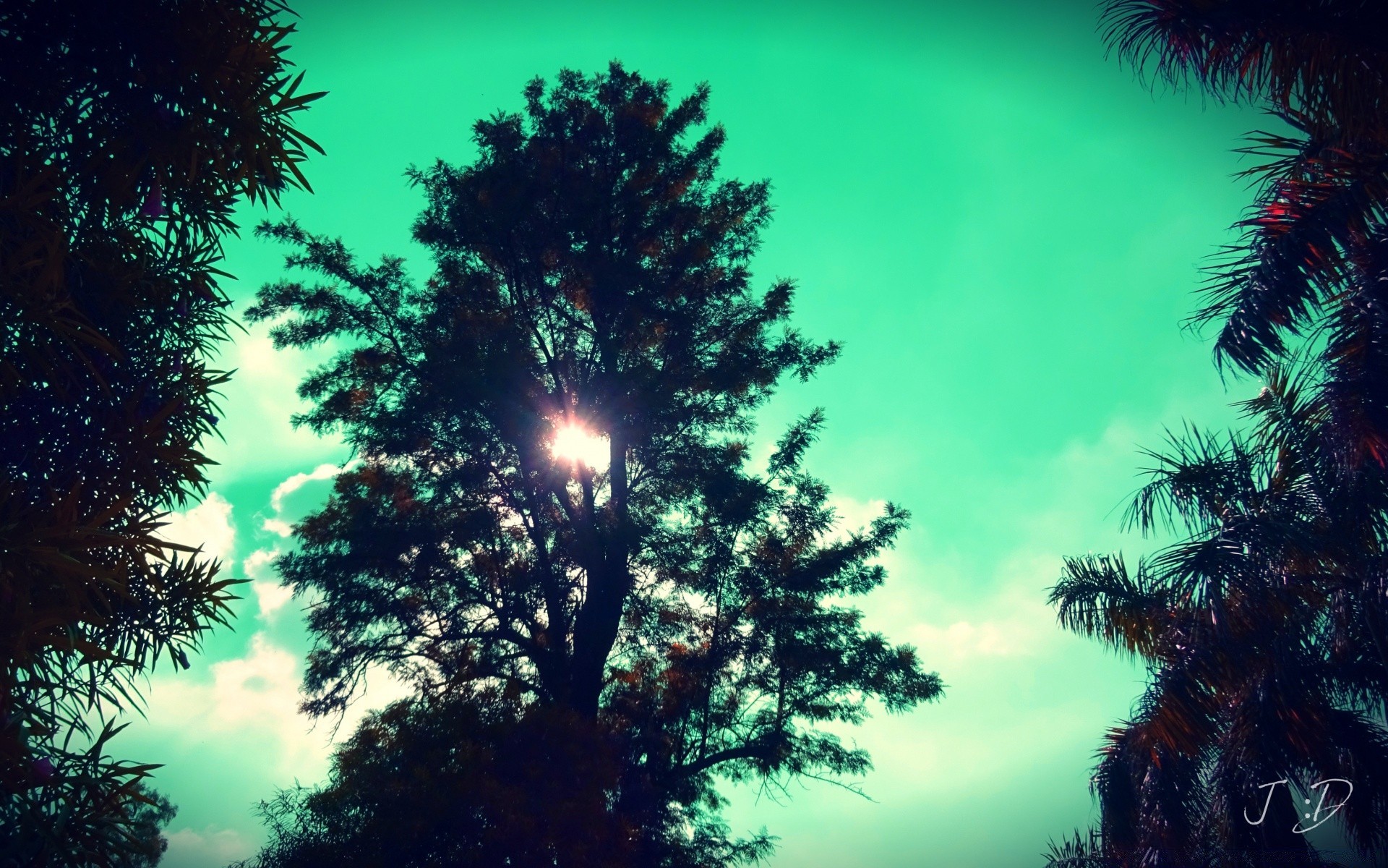 Le ciel est éclairé par les premiers rayons, vue de la forêt