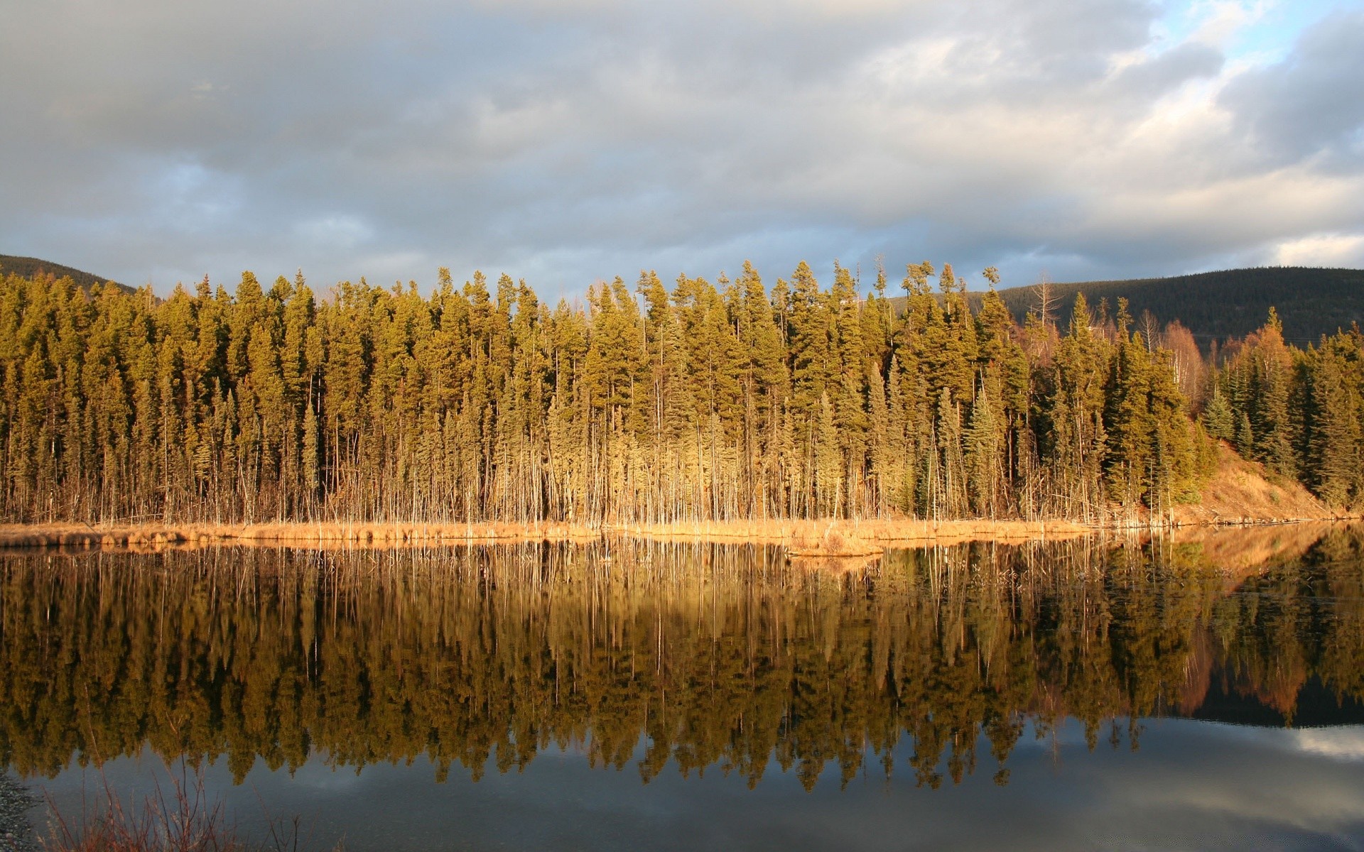 FORÊT AU BORD D'UN ÉTANG PARMI LES COLLINES