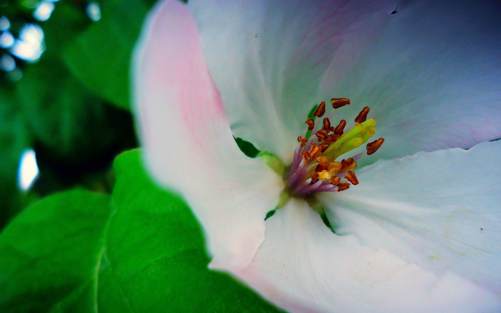 Fleurs blanches avec cinq pétales trois fleurs au premier plan fond flou en arrière-plan ciel bleu avec nuages