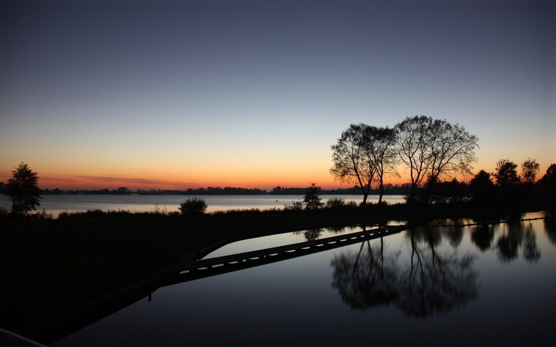Aube et coucher de soleil se reflétant dans le lac