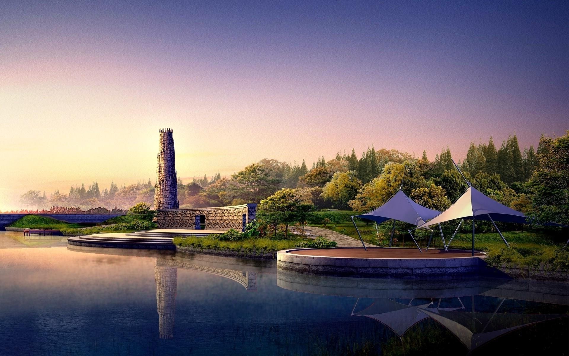 Coucher de soleil fabuleux sur la rive du ruisseau