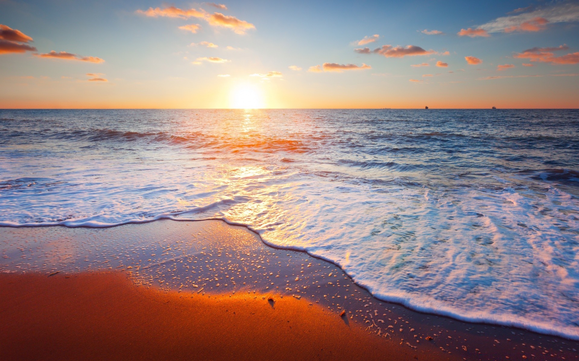 Coucher de soleil sur la mer avec des vagues calmesCoucher de soleil sur la mer avec des vagues calmes