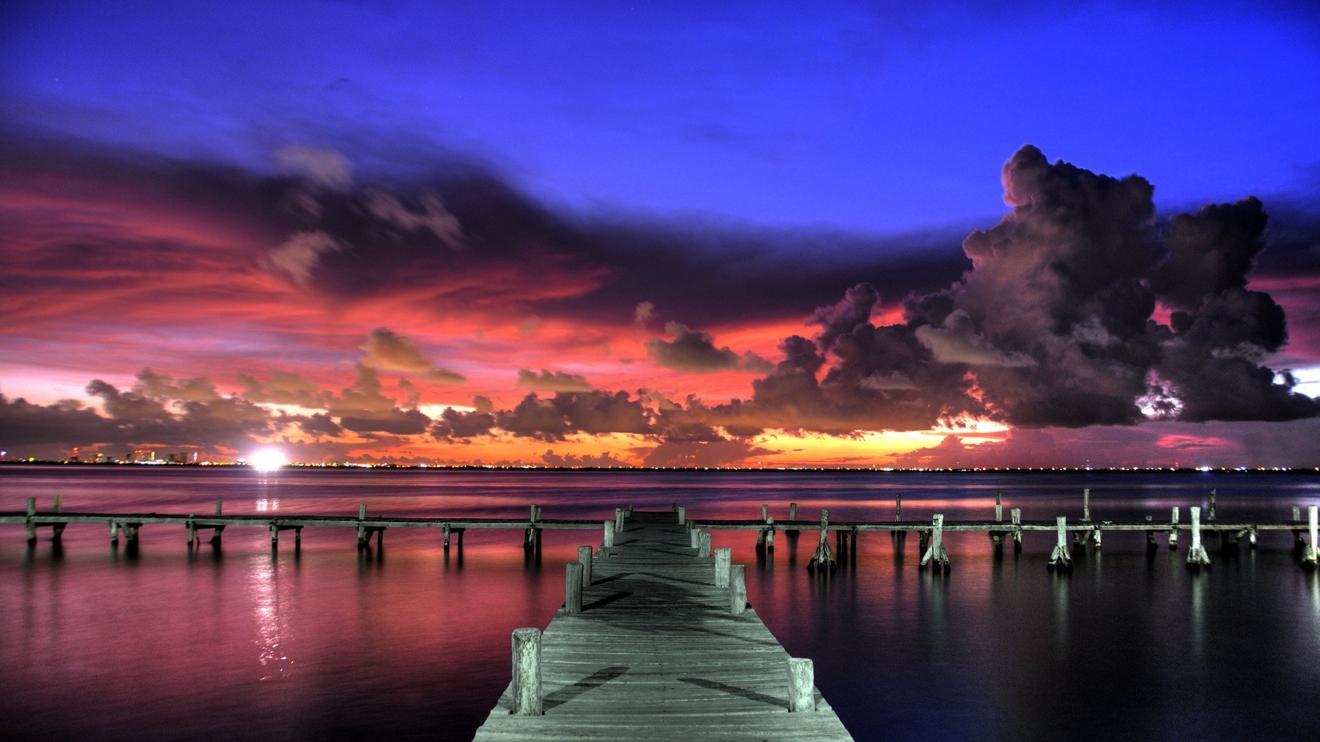 Incroyable coucher de soleil attire au-delà de l'horizon