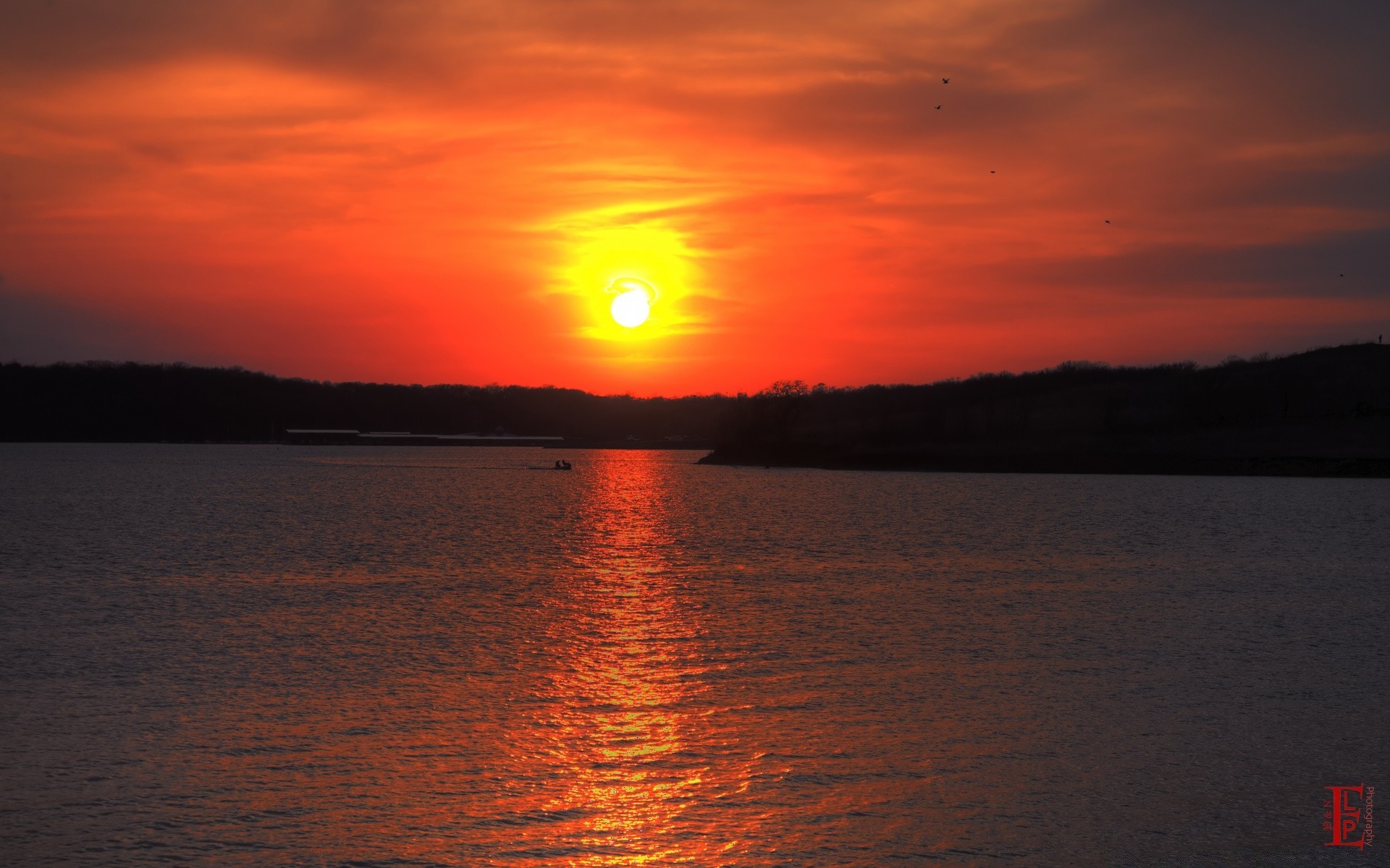 Ciel coucher de soleil avec des nuages au-dessus de l'eau